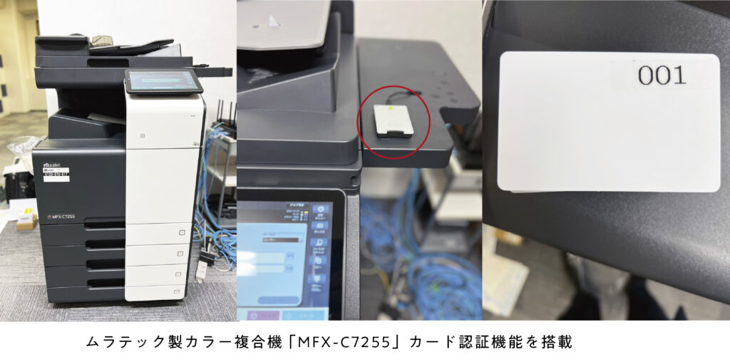 複合機にはカード認証機能を搭載。50名程の会員様ごとに番号付きのカードを発行し、印刷枚数を自動で集計・管理できるようなっております。これにより、管理者様は会員様ごとの印刷利用分をスムーズに請求いただけます。
