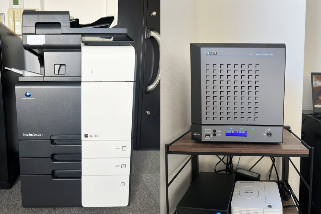 コワーキングスペースを運営されているお客様に、ムラテック製カラー複合機 「MFX-C7255」とUTM(統合脅威管理)「TMB1555」 をお納めしました。
