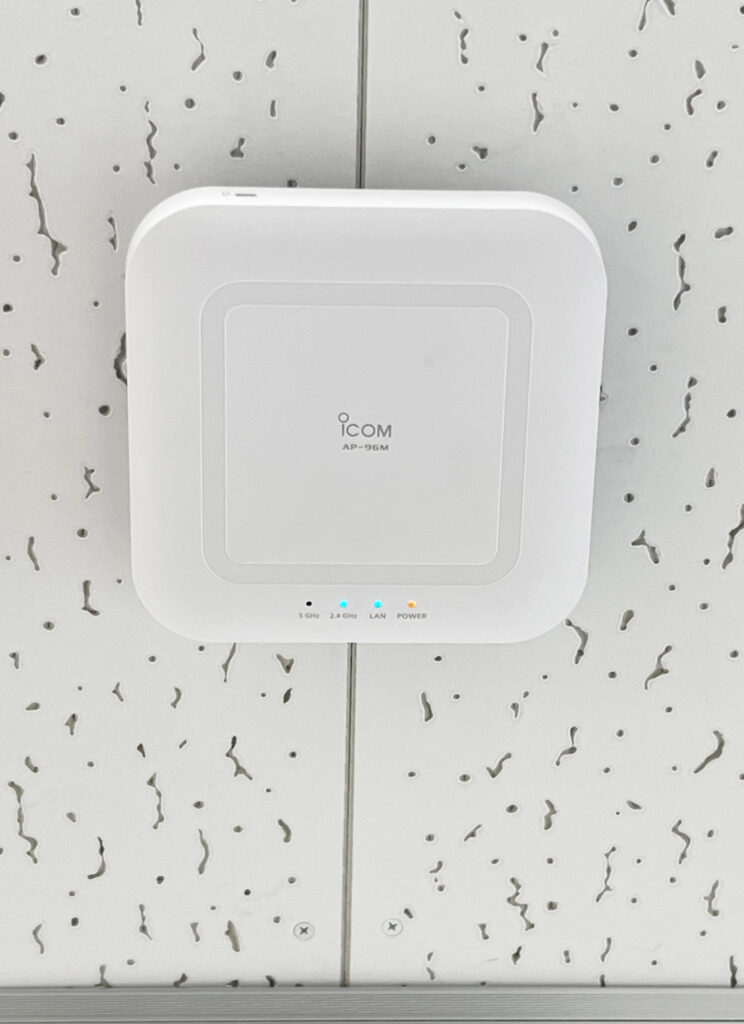 「今後ロボット導入を予定しているため、無線アクセスポイントを設置したい」とご相談をいただきました。今回は ICOM製アクセスポイント「AP-96M」 をお納めし、施設内の通信環境を整備しました。