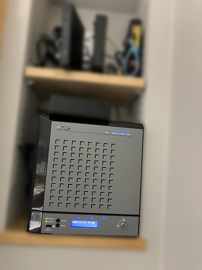 →ムラテック製インフォメーションガード(UTM、Nas)を設置させていただきました。
